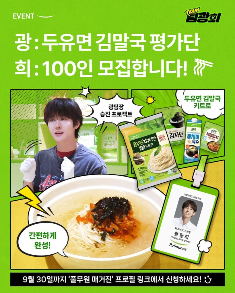 지난해 풀무원 공식 유튜브에서 ‘광집사’ 프로그램의 메인 출연진이었던 황광희가 이번에는 시즌2 ‘팀광희’로 돌아와 새로운 부캐를 보여주었는데요. 풀무원 지구 식단 TF팀 팀장이 되어 사내 직원들을 만나고 지구 식단 상품을 소개하곤 합니다.