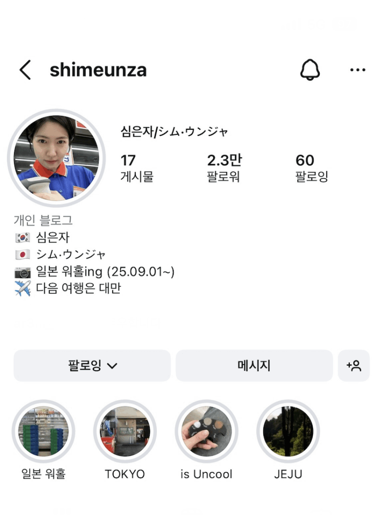 9월 1일 개설된 인스타그램 계정 심은자(@shimeunza)에는 일본 워홀러의 일상이 담겨있는데요. 메론빵 트럭을 발견했다는 짧은 기록, 도쿄 여행 사진, 편의점 아르바이트를 하는 모습까지 누가 봐도 진짜 워홀러의 인스타그램 계정처럼 보이죠. 하지만 자세히 들여다보면 곳곳에서 카카오페이의 메시지를 발견할 수 있습니다.