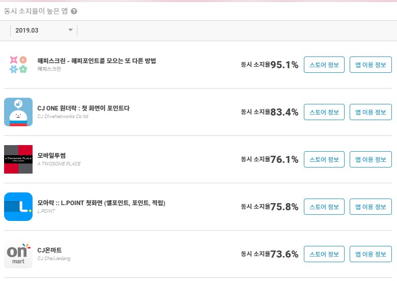 '해피포인트' 앱과 동시 소지율이 높은 앱
