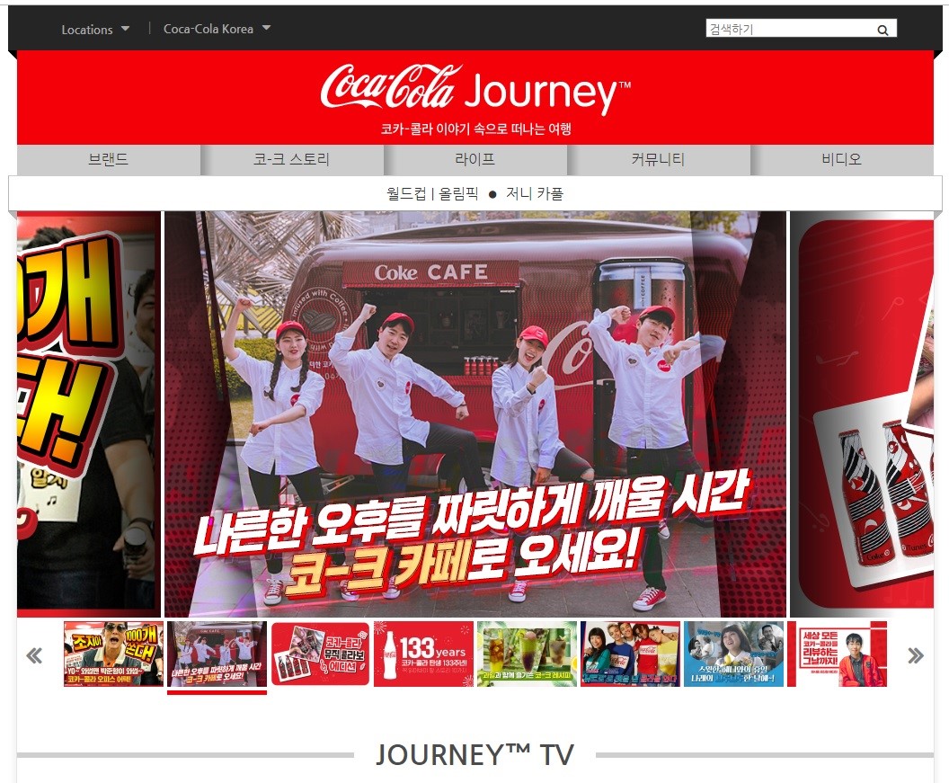 ‘코카콜라 저니’ 한국 사이트는 2018년 평창동게올림픽을 앞두고 2017년 11월 문을 열었습니다. 브랜드 비하인드 스토리를 비롯해 마케팅 캠페인, 지속 가능한 경영과 혁신을 위한 노력, 트렌드와 이슈 등 코카콜라의 철학을 전달하고 있습니다. 무엇보다 다양한 모델들의 독점 화보 및 인터뷰 영상을 공개해 팬들에게도 좋은 반응을 얻고 있습니다. 그간 한국 코카콜라 저니 사이트에서는 박보검, 김연아, 박보영을 비롯 방탕소년단(BTS)와 함께 찍은 화보를 공개해 화제가 되기도 했습니다.