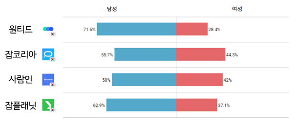 다른 구인/구직 앱도 남자 비율이 높을까?