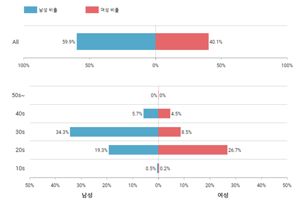 다른 구인/구직 앱도 남자 비율이 높을까?