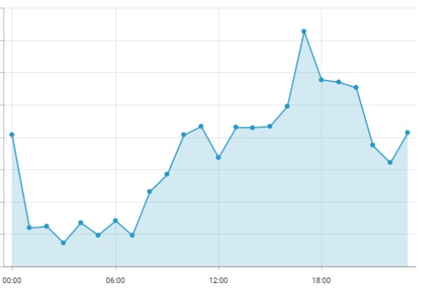 '린더' 앱 사용자들이 가장 많이 접속하는 시간대를 알아보겠습니다. 월간 시간대 별 활성 사용자 그래프를 살펴보면 오후 5시에 가장 높은 수치를 기록하였습니다. 아무래도 1020 연령 비율이 가장 높다 보니 학교나 학원 등이 끝나는 시간 즈음에 가장 많은 접속을 하는 것으로 보입니다.
