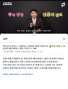 그중에서 댓글 반응이 좋은 콘텐츠는, 매주 일요일에 만나볼 수 있는 소비더머니일 것 같습니다.