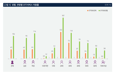 2019년 미디어패널 연령별 OTT 서비스 이용률 조사결과, 20대가 가장 높은 이용률을 보였으며 그 뒤를 30대가 이었다. 점점 이용량이 늘고있으며 20대 사용자들이 즐겨찾는 OTT 서비스, 왜 사용자들은 서비스에 열광할까?
