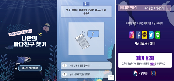 ‘1388 청소년사이버상담센터 : 나만의 바다친구 찾기’ http://1388findfriend.kr/