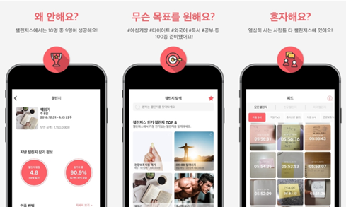 그리고 작심삼일러들을 위한 목표 실행 ‘강제력’을 부여한 어플도 나왔습니다. 바로 ‘챌린저스’입니다. 2020년 기준 누적 가입자수 51만명, 참가건수가 158만건을 달성하는 인기 어플리케이션입니다. 해당 어플은 미라클 모닝을 위해서 나온 어플은 아니지만 이른 시간에 일어나는 것, 혹은 그 시간에 무언가를 하는 것을 인증할 수 있습니다. 본인의 의지를 다지기 위해 돈(예치금)을 걸어 두는 것이 해당 어플의 포인트입니다. 특정 기간동안 85% 이상의 성공율을 보인다면 환급 받고 100%를 달성한다면 상금을 받아갈 수 있지만, 그렇지 않는다면 벌금이 되기에 사람들은 꼭 그 목표를 이루고자 노력합니다. 특히 해당 어플의 인기 챌린지 중 하나가 아침 6시 혹은 7시에 기상하기라고 하는 만큼 사람들이 해당 어플을 미라클 모닝을 하기 위해 많이 사용한다는 점을 인식할 수 있습니다. 아침 운동하기, 외국어 문장 3개 쓰기, 기사 하나 읽기 등 소소한 본인의 목표와 기상목표를 함께한다면 해당 어플 내에서 미라클 모닝을 완벽하게 실현할 수 있습니다.