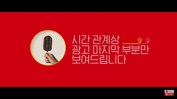 이 광고는 특히 tv광고에서는 15초 시간 제한으로 인해 이런 내용을 모두 담지 못합니다. ‘시간 관계상, 광고 마지막 부분만 보여드립니다’라는 문구와 함께 갑자기 결론만 나오고 끝나버립니다. 갑자기 돼지바를 들고 화성에 가버린 주인공, 미국 뉴욕으로 진출한 주인공의 모습만이 나오기 때문에 도대체 어떤 연유로 이렇게 가게 되었는지가 궁금해 직접 찾아보게 만든데 있습니다. 댓글에서도 tv광고 보고 왔다는 이야기가 많은 만큼 800만, 600만을 넘은 조회수 역시 이런 부분이 많은 영향을 미쳤다고 볼 수 있습니다.