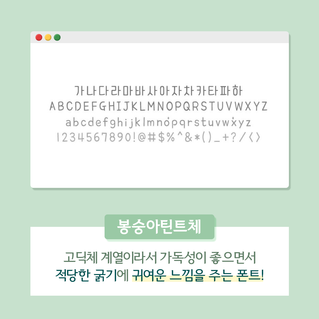 가독성이 좋으면서 과하지 않은 적당한 굵기에 둥근드낌을 가지고 있어