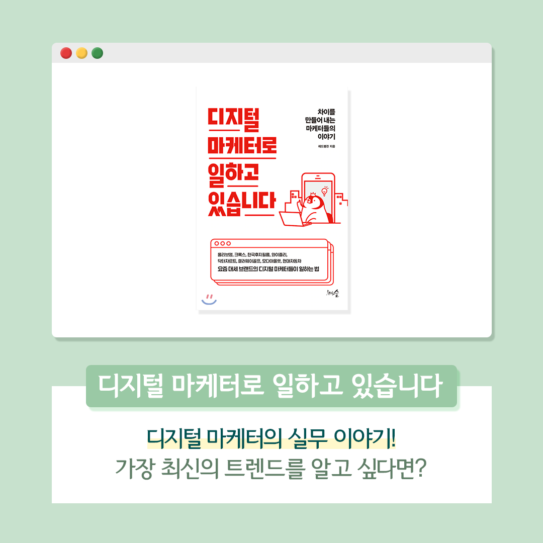 가장 최신의 디지털 마케팅 실무 이야기가 궁금하거나 최신의 트렌드를 알고 싶다면 '디지털 마케터로 일하고 있습니다'를 추천드립니다.