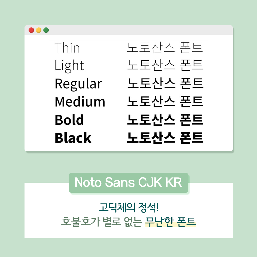 가독성이 좋고 단정한 느낌이 들어 자주 사용되는 폰트입니다.