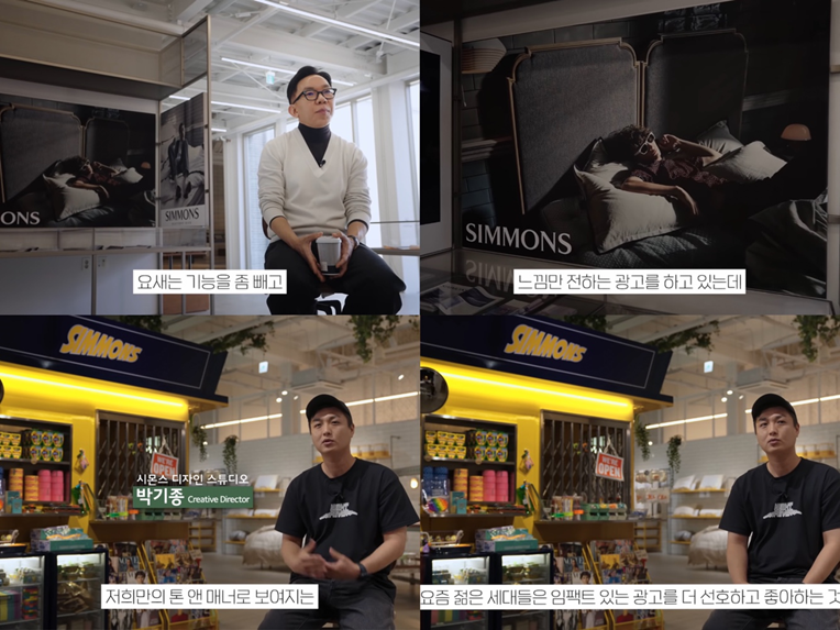 2019년 즈음부터 시몬스 광고는 침대 광고임에도 불구하고 침대를 광고에서 제거하는 과감한 시도를 계속 해오고 있습니다. 이런 의문에 대해 시몬스 코리아에서 직접 영상을 제작했습니다. 시몬스는 이동안의 광고를 통해 우리에게 익히 ‘브금(bgm)맛집’으로 소문이 났습니다. 광고 내 음악 삽입을 매우 적절하게 해 이 음악을 들으면 ‘아, 이거 시몬스 광고에서 들었던 그 노래 아니야?’를 자연스럽게 연상시키도록 했습니다. 그렇게 우리가 이 브랜드와 브랜드의 광고를 침대 자체 보다 음악으로 기억하며 떠올려왔다는 점을 아예 착안했습니다. 그리고 과거엔 브랜드가 기능과 느낌을 함께 전달하는 것을 광고의 목적으로 했다면, 최근에는 느낌만을 전달하는 데 주안점을 두고 있다고 말합니다. 그렇다면 특히 이번 광고는 그 목적을 완벽하게 달성했다고 해도 과언이 아닐 것입니다. 또한 이 영상은 감각적인 영상 자체만으로 그 동안 일관되게 진행해 왔던 시몬스의 ‘흔들리지 않는 편안함’이라는 카피와도 잘 맞닿아 있다고 생각이 듭니다. 또한 그런 모든 점에서 착안해 이번 광고는 다양한 잡지와 광고제에서도 주목하고 상을 받을 만큼 완성도 높은 광고로 평가받고 있습니다. 그리고 공개 12일 만에 유튜브에서만 조회수 1070만회 이상을 기록하는 엄청난 성과를 보이고 있습니다.