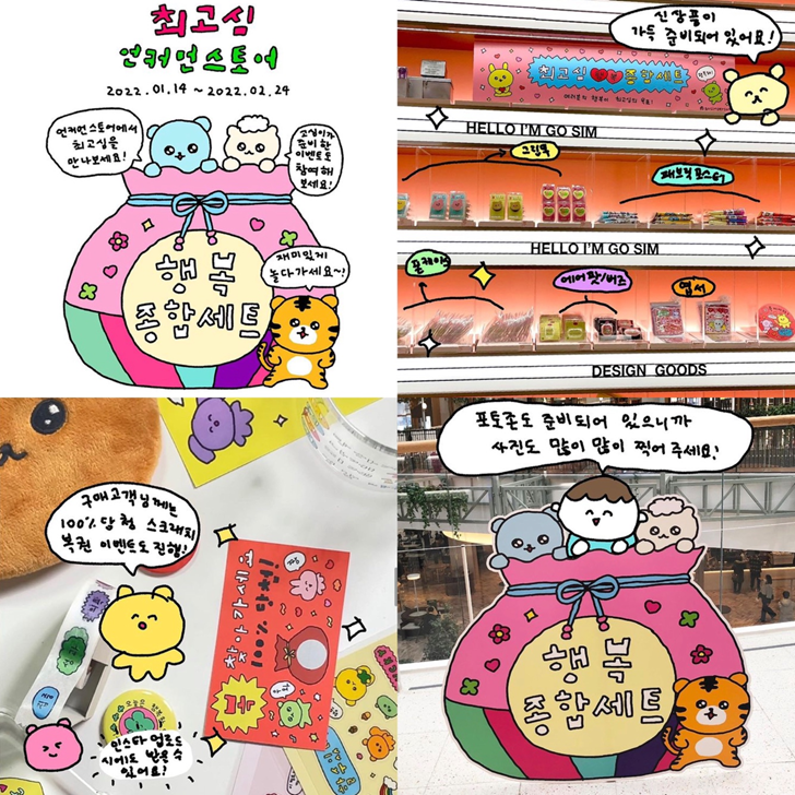 해당 팝업스토어에서는 메모지, 유리컵, 엽서 그립톡이나 패브릭 포스터, 마스킹 테이프 등 젊은 세대에 인기있는 굿즈들을 판매하고 있었습니다. 그리고 단순히 굿즈를 판매하는 것 이상의 팝업스토어만의 이벤트도 준비되어 있었습니다. 구매한 제품을 담아갈 수 있는 봉투를 최고심 캐릭터 도장을 찍어서 꾸밀 수 있습니다. 또한, 상품을 구매한 것을 확인하면 ‘복 뽑기권’을 통해 경품을 받아갈 수 있는 ‘최고심 스크래치 복권 이벤트’입니다. 뱃지에서 노트북 파우치까지 다양한 경품을 받아갈 수 있어, 이 곳에서만 즐길 수 있는 의미있는 이벤트라고 할 수 있습니다.