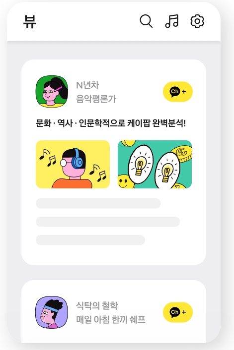 카카오뷰는 다양한 관점과 시선에서 선정된 콘텐츠를 볼 수 있는 큐레이션 서비스예요. 예를 들어 '카카오TV'의 카카오뷰를 팔로우하면 카카오TV가 선정한 콘텐츠만 모아볼 수 있는 거죠. 중요한 건 기업뿐만 아니라 개인도 이 큐레이션을 발행할 수 있어서 각자의 개성 넘치는 콘텐츠 리스트를 들여다볼 수 있다는 점입니다. 매일의 이슈부터 정치, 경제, 시사까지 '누가' '어떤 기준으로' 콘텐츠를 모았느냐가 맹점이 되는 셈이죠. 게다가 구독자를 모아 커뮤니티를 형성할 수 있고, 많은 사람들이 찾는 채널이 되면 수익으로 연결될 수도 있습니다. 그렇다면 우리 브랜드의 관점이 잘 드러나는 카카오뷰를 만들 수 있을까요?
