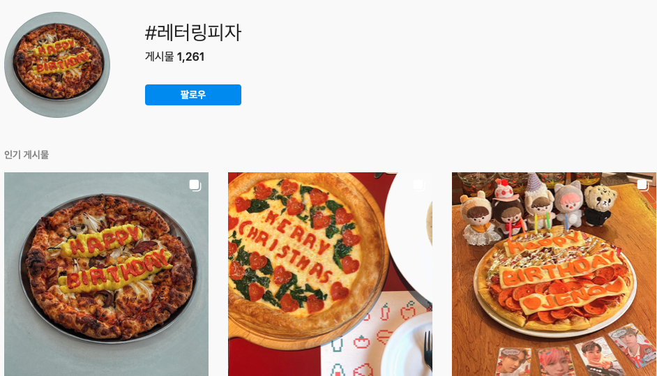 이런 점에서 커스터마이징된 제품은 케이크뿐만 아니라 식품 전반으로도 퍼져나가고 있는 것 같습니다. 예를 들어 원하는 문구를 피자에 새겨주는 레터링 피자집이 곳곳에 생기고 있는데요. 레터링 케이크만큼 아직 알려지지는 않았지만, 피자라는 간단한 음식을 특별하게 경험할 수도 있고, 생소해서 더 재미도 있어요. 물론 SNS에 인증샷을 올리기도 좋고요!
