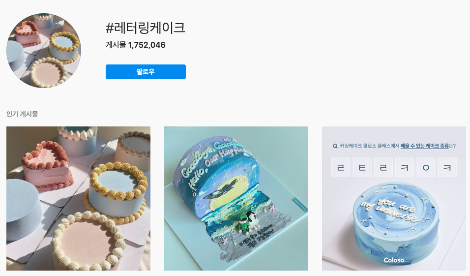 요새는 오히려 베이커리 브랜드의 시판 케이크나 심지어 호텔 베이커리의 케이크 마저 저렴해 보이기도 해요. 인스타그램에 #레터링케이크를 검색하면 175만 건이 넘는 태그가 올라와 인기를 실감할 수 있어요. 확실히 레터링 케이크는 기념일 문화에 빠질 수 없는 것은 물론이고, 소소한 모임이나 집들이에서도 선물하기 좋은 아이템으로 자리 잡은 것 같습니다.