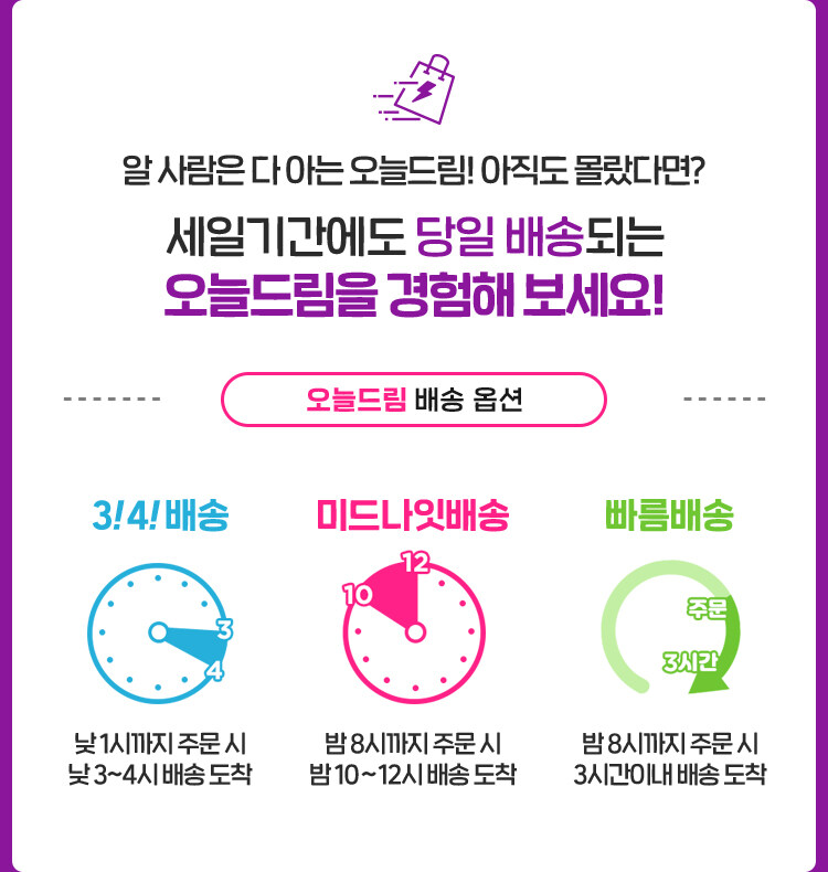 또 한편에서는 온라인 사업을 열심히 확장하고 있는데요. '오늘드림'은 올리브영이 주력하고 있는 모바일앱을 통한 대표적인 배송 시스템이예요. 옵션은 무려 3가지로 최소 2시간에서 최대 4시간 사이로, 당일 배송이 가능한 서비스에요. 뷰티 제품 특성 상 갑작스럽게 필요한 시점이 누구에게나 찾아오기 마련인데요...! 이럴 때 꼭 필요한 서비스라고 할 수 있겠죠.