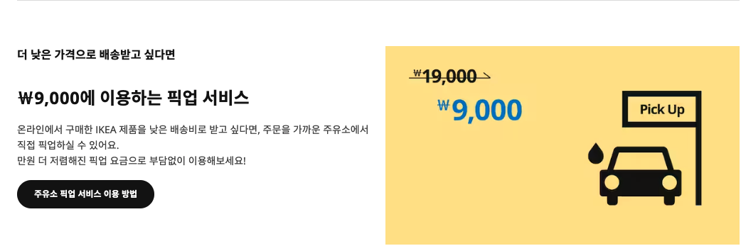벌써 핀란드에서는 온라인으로 주문하고 매장에서 드라이브스루 형식으로 제품을 받을 수 있는 '클릭 앤 콜렉트' 서비스가 도입이 되었다고 해요. 한국에서도 온라인 서비스를 강화해나가겠다고 말한 참인데요. 최소 배송비가 29000원으로 줄어들면서도 배송기간을 당겨 서비스도 강화하면서, 먼 지역에 사는 사람들이 주유소를 통해 픽업할 수 있도록 픽업 포인트들을 새롭게 만들었습니다.