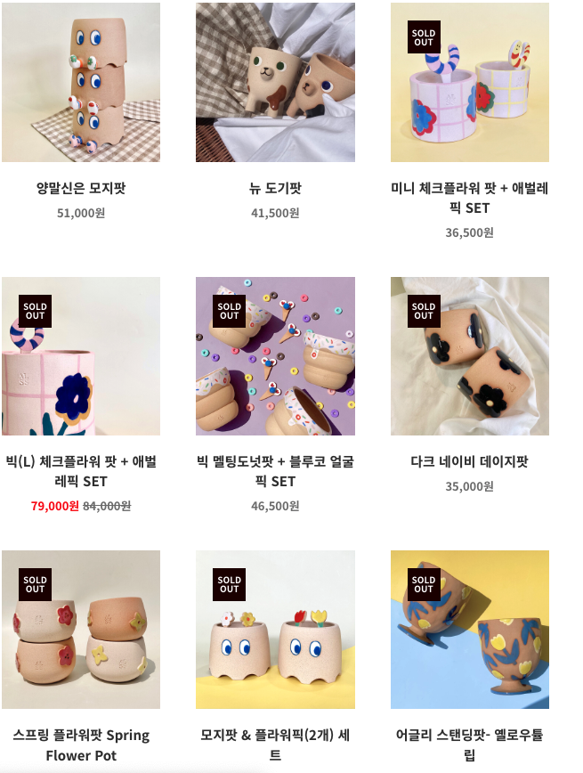 식물에 대한 관심이 코로나와 자연을 통한 힐링 풀멍 키워드, 나아가 식테크 문화를 타고 급증했는데요. 힙한 취미인 식물을 더 힙하게 만들어주는 건 무엇보다 수제토분이라고 할 수 있을 것 같습니다. 품절 대란을 일으킨 명품 화분 브랜드 듀가르송을 시작으로 2010년대부터 도예 공방들이 화분을 생산하기 시작했어요. 디자인 화분, 브랜드 화분으로 불리는 이 수제 토분들은 100% 수작업으로 진행이 되기 때문에 상품 자체도 소량 입고가 될뿐더러 국내뿐만 아니라 해외에서도 인기가 높아서 입고가 되자마자 1~2분 안에 완판이 됩니다. 실제로 지금 소개해드릴 화분 공방 사이트를 방문했을 때 구매할 수 있는 상품은 거의 없어, 대부분 입고를 기다려달라는 안내 메세지가 붙어있었습니다.