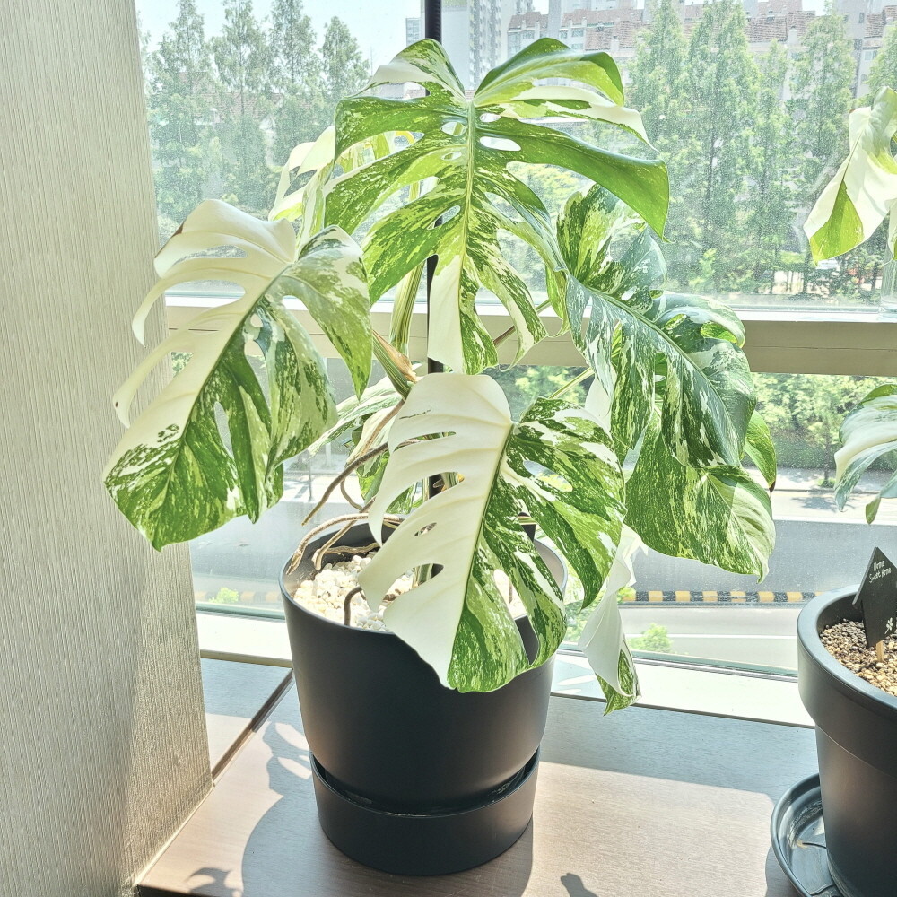 몬스테라 알보의 정식명은 '몬스테라 보르시지아나 알보 바리에가타'(Monstera Borsigiana Albo Variegata)라고 하는데요. 일반적인 몬스테라에 흰색이 섞이면서 줄기와 잎에 독특한 무늬가 생겨요. 알보몬이라고도 불리는 이 몬스테라 알보는 거래량이 많아서 입문자들이 접근하기 좋은 식물이라고 할 수 있어요.