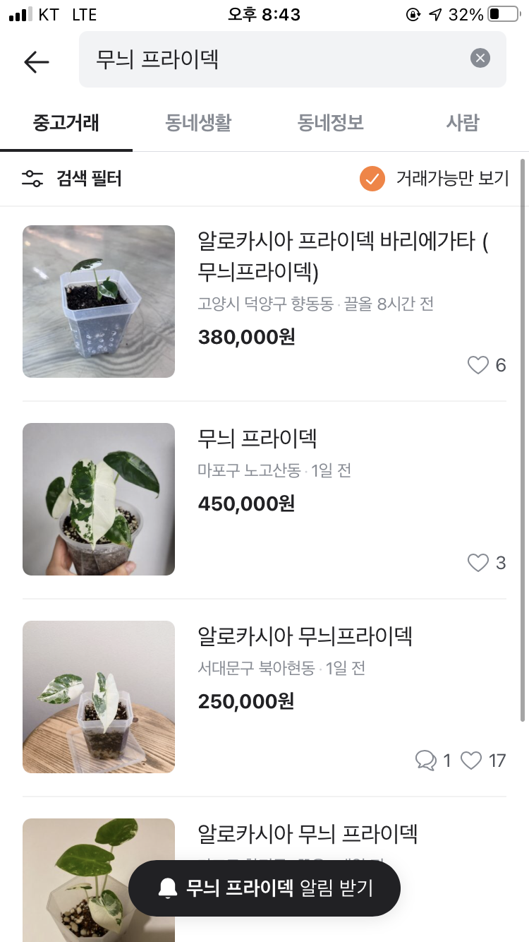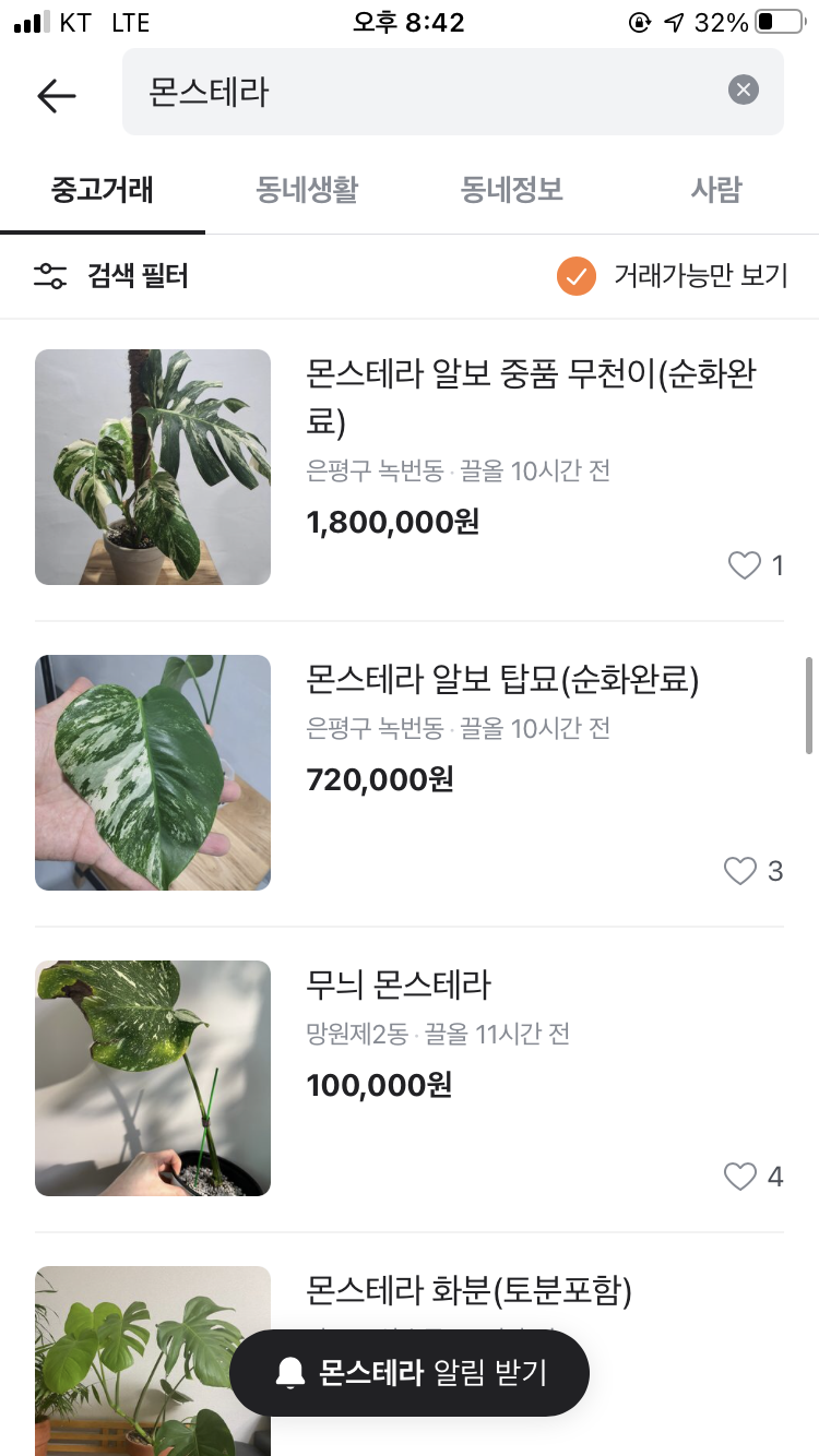 또 ‘식테크’도 식집사들의 유입을 늘린 요인이기도 했죠. 잎 한 장에 100만 원을 호가하는 희귀 식물들은, 잘 키워서 리셀하면 주식 못지않은 재테크가 될 수 있다는 생각들을 만들었습니다. 당장 당근마켓에만 검색해봐도 몬스테라 알보나 무늬 프라이덱 같은 인기 있는 식물들은 1,2백만 원 대도 쉽게 찾아볼 수 있었는데요. 인스타에서도 몬스테라 알보가 태그 된 게시물은 1만 3천 건이 넘어요. 그만큼 희귀 식물들에 대한 관심이 높아지고 있습니다.