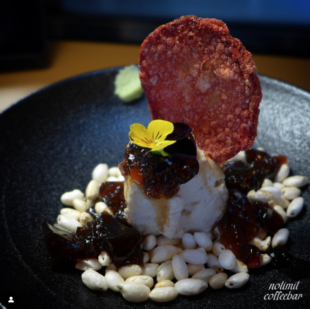 노리밋은 정말이지 독특한 컨셉을 가진 오마카세인데요. 언뜻 커피바인 것 같지만, 다양한 코스 중에서 '노 리밋 코스'는 커피라기 보다 커피를 가미한 음식에 가깝습니다. 스타터와 메인 2가지, 디저트로 구성되어있어요. 그렇기 때문에 커피 오마카세라고 하면 에스프레소를 엄청 마시게 될 것 같지만, 실제로 코스에는 카페인은 에스프레소 2잔 정도의 함량만 들어있어요. 다른 티 코스나 오마카세처럼 단순히 음료만 계속 마시는 게 아니라 커피를 주제로 새롭게 재해석한 요리들을 맛볼 수 있어요. 왼쪽 사진은 초밥의 형태를 커피의 한 종류인 '아포카토'로 풀어낸 음식이라고 하네요. 노리밋 코스는 인당 4만원에 맛볼 수 있어요.