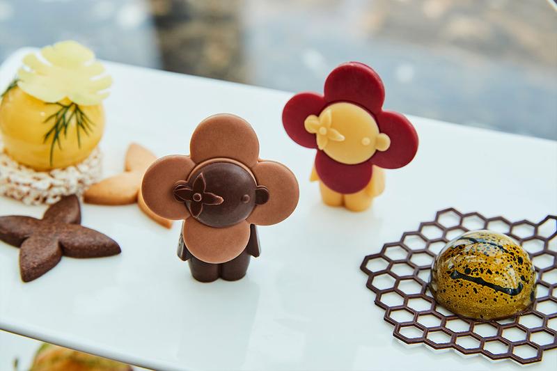 실내 분위기도 곳곳에서 고급스러운 느낌을 그대로 느낄 수 있었습니다. 천장에는 '루이비통 오브제 노마드 컬렉션'에 디자인으로 사용되었던 플라워 패턴 1만여 개가 걸려 반짝이는 아름다운 풍경을 자아내기도 했죠. 특히 루이비통 캐릭터 비비엔과 루이비통 로고가 새겨진 디테일에 귀여운 것을 환호하는 사람들의 마음을 정곡으로 겨냥하기도 했어요. 루이비통을 한국식으로 재해석했다는 점도 많은 찬사를 받았는데요. 제주 한라봉 콤포트를 사용해 카라멜 무스를 제공하거나 안주류 소스에 참깨와 참기름 맛이 강한 소스를 곁들이는 것 또한 그랬죠. 사람들이 루이비통 브랜드를 향해 가질 보편적 기대는 물론, 전통적 취향까지 고려한 다양성이 눈에 띄는 기획이었어요.