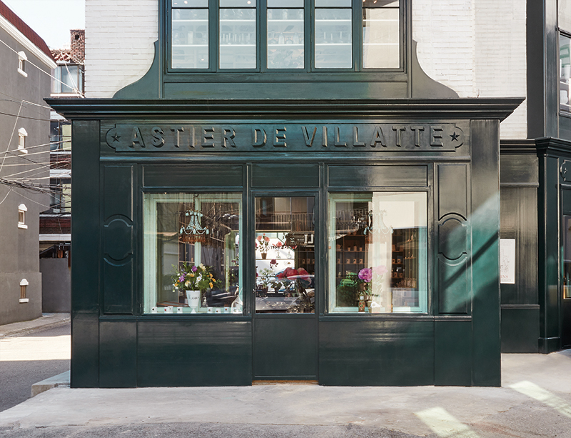 파리에 있는 매장 외에는 한국이 첫 번째로 오픈한 플래그십 스토어라고 하는데요. 작년 9월에 한남동에 문을 연뒤 최근에는 현대백화점 압구정점에도 입점이 되었어요. 아스티에 드 빌라트의 제품들은 온라인을 통해서 수요가 꾸준히 있어 왔지만, 플래그십 스토어를 런칭하면서는 이곳에서 판매하는 제품뿐만 아니라 건물 외관의 인테리어로도 큰 주목을 받았습니다. 파리의 매장을 한남동에 그대로 옮겨놓은 것 같다는 내외부의 평가가 있기도 했어요. 한남동 상가건물이 파리 시내에 있을법한 인테리어로 탈바꿈 한 것이죠.