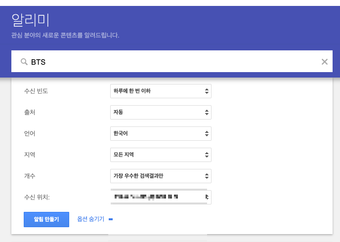 마케터들은 수시로 최신 마케팅 이슈나 동향들을 수집하고 파악해야하는데요. 이런 면에서 구글 엔진에 알리미 설정을 해두면 내가 관심 있는 키워드에 대해서, 주기적으로 알림을 받아볼 수 있어요. 이때, 수신의 빈도나 출처, 언어, 지역, 개수 등을 직접 설정할 수 있기 때문에 내가 필요한 정보를 미리 세팅해두고, 매번 직접 검색하는 대신에 원하는 날에 받아볼 수 있는 방식입니다. 나에게 맞춰서 키워드 설정을 해두었다면, 개인 메일을 통해서 언론이나 웹의 정보들을 받아볼 수가 있는 것이죠.
