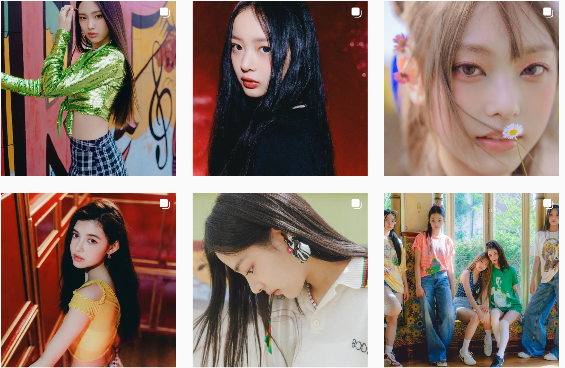 뉴진스가 추구하는 이미지 역시 이런 큰 흐름의 변화 속에서 살펴볼 수 있어요. 이전의 걸그룹들을 생각하면, 화려하거나 확고한 컨셉을 가진 이미지가 떠오르는데요. 작년 데뷔한 SM의 에스파나, 데뷔시기에 큰 차이가 있지만, 여전히 YG의 대표 걸그룹인 블랙핑크와는 스타일링부터 세계관, 음악 장르까지 완전히 다르게 느껴져요. 뿐만 아니라 데뷔시기에 큰 차이가 없는 뉴진스의 소속사 어도어의 모회사인 하이브의 다른 걸그룹인 르세라핌과도 많이 다르다는 느낌을 받죠. 훨씬 더 편안하고 친근함을 강조하는 방식으로 10대 문화를 표현하고 있어요.