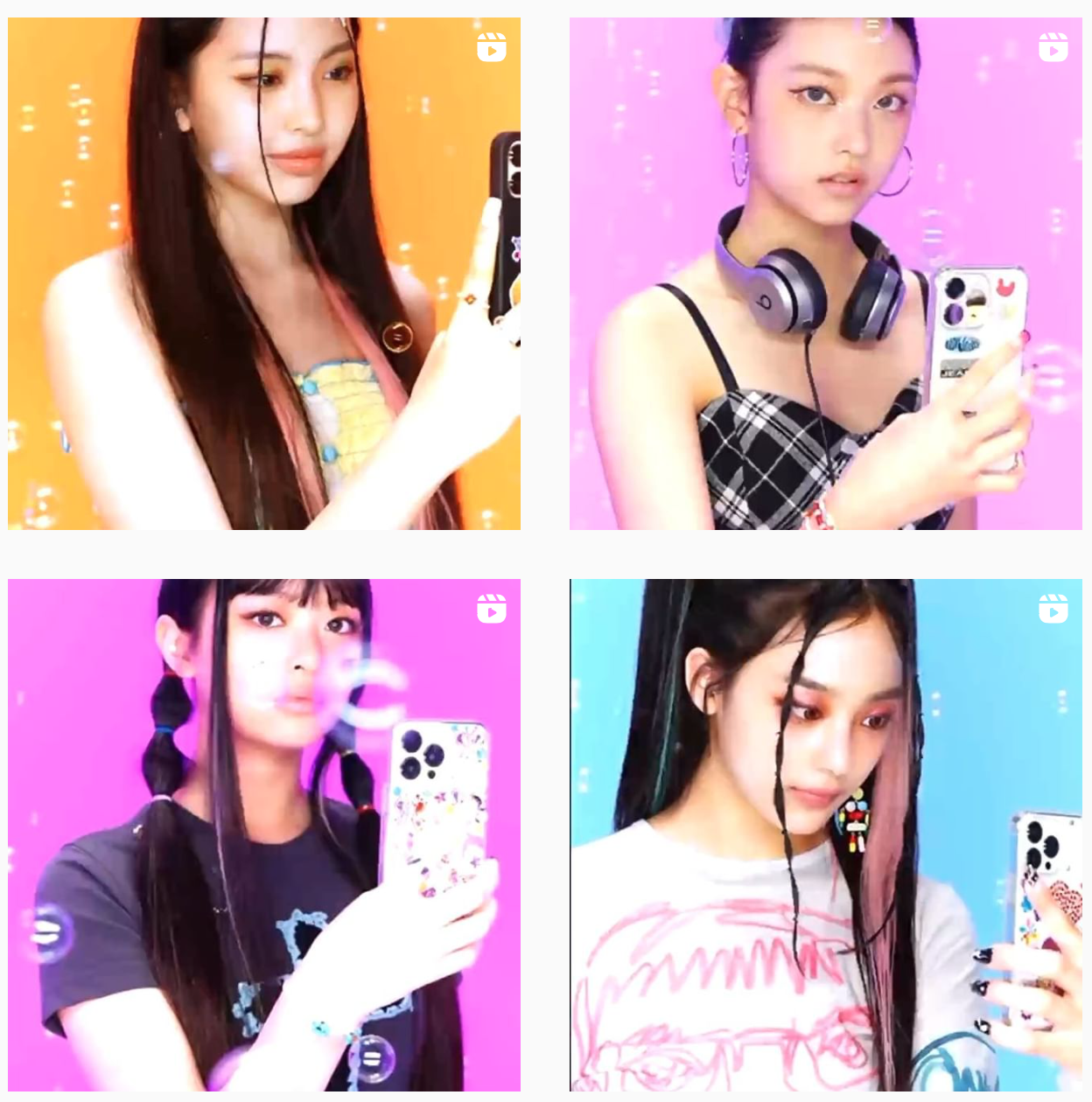확실히 새로움을 주면서도, 친근한 느낌을 동시에 주고 있는 이유는 트렌드를 바꿨지만 이 새로운 트렌드가 00년대 감성을 비틀면서 반복하고 있다는 점 때문인데요. Y2K 컨셉은 뉴진스가 스타일링, 앨범, 굿즈 등 전면적으로 신경을 쓰고 있는 부분입니다. 어도어가 공식 인스타그램에 올린 사진들을 보면 유선 헤드폰 같은 아이템이나 헤어, 네일 등의 스타일을 통해서 1세대 걸그룹을 재현하고 있는 모습이죠.