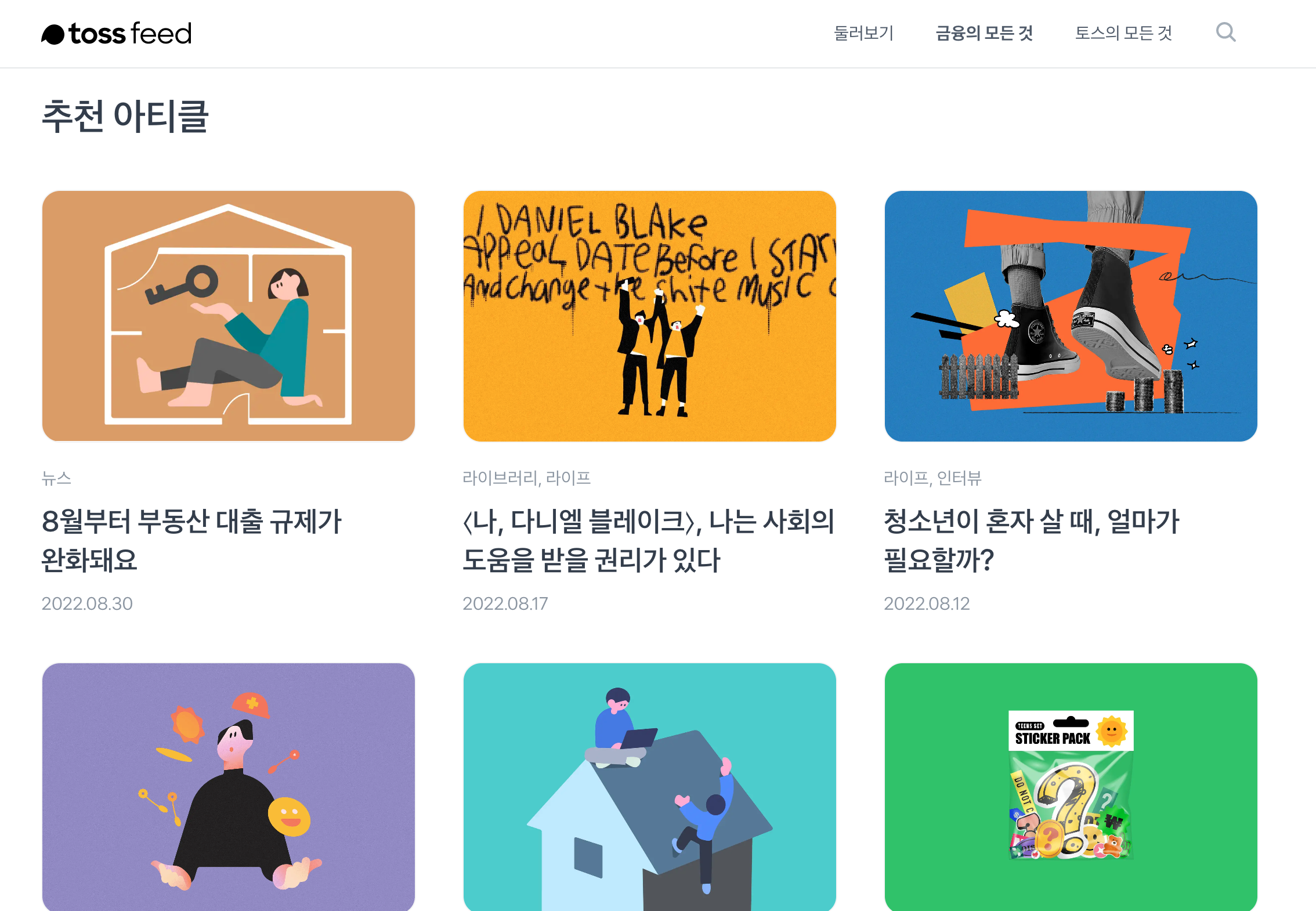 콘텐츠에 집중하고 있는 또 다른 핀테크 기업의 예시로는 대표적으로 토스가 있습니다. 토스는 2018년부터 토스피드라는 기업 블로그를 통해서 상당히 다양한 정보를 담은 콘텐츠를 생산하고 있어요. 오늘은 토스가 텍스트와 영상을 넘어 다양한 콘텐츠를 통해서 어떻게 브랜딩을 시도하고 있는지 살펴볼게요!