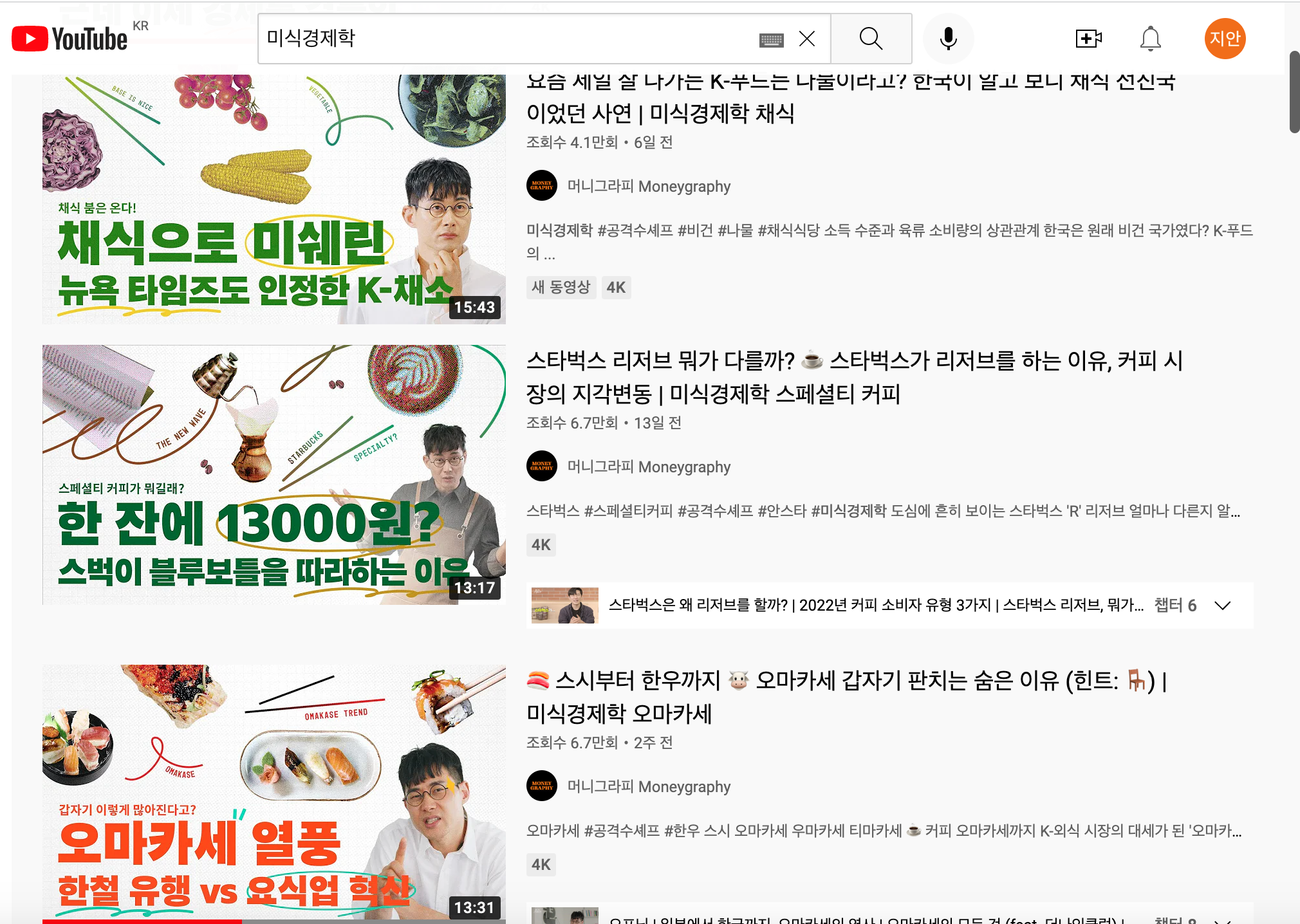 미식 경제학은 우선 10분내외로 짧으면서, 편집이나 연출, 이야기의 흐름이 고퀄이기 때문에 누가 보아도 잘 만든 경제 콘텐츠라는 생각이 들어요. 게다가 본격적으로 경제 이야기를 했다면 접근성이 떨어졌겠지만, ‘미식’이라는 모두의 관심사를 가지고 ‘경제’를 풀어내니 굉장히 쏠쏠하면서도 세련된 콘텐츠가 만들어졌어요.