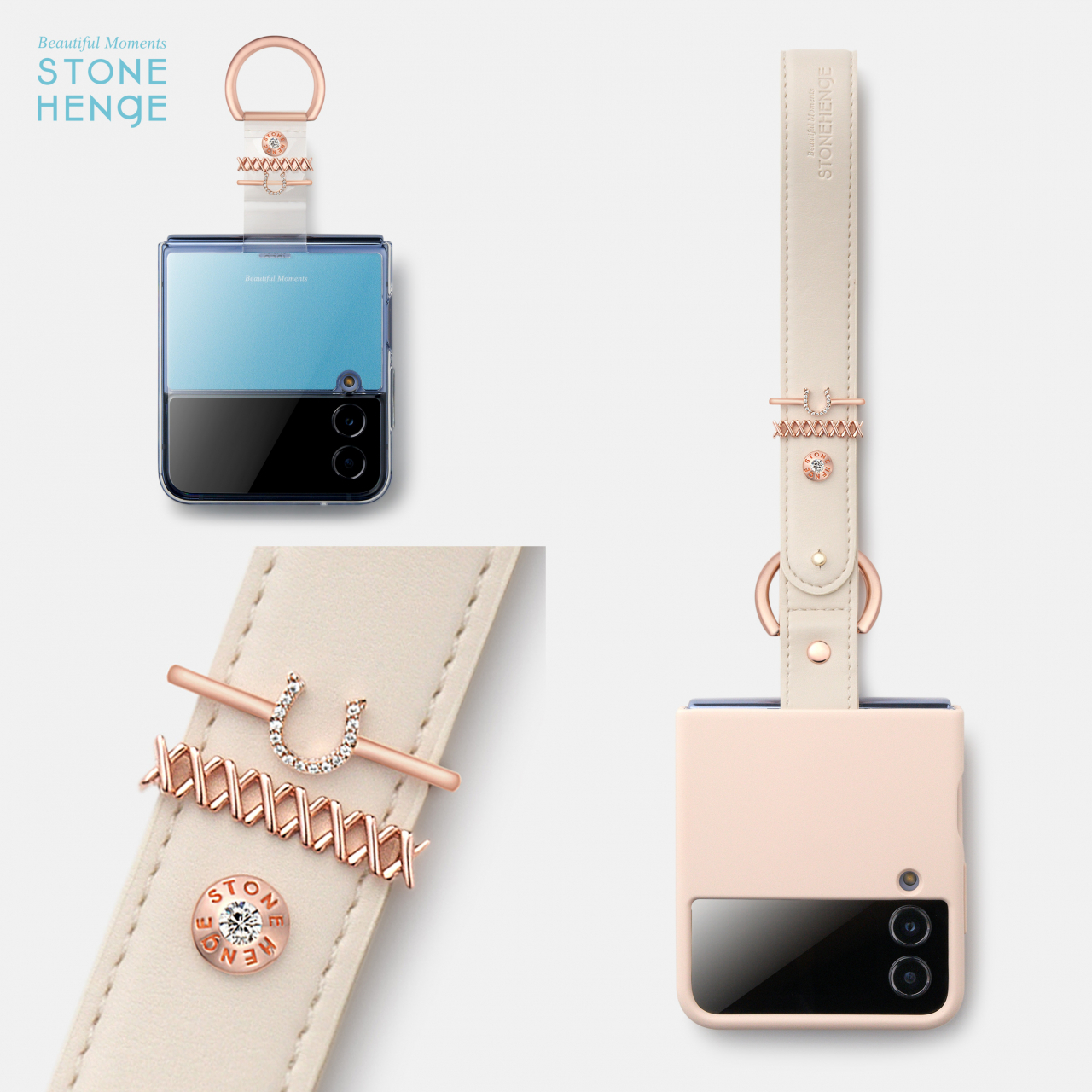 1020 세대의 뜨거운 호응을 얻었던 갤럭시 Z플립. 작고 가볍고 팬시하면서 귀여운 디자인으로 많은 IT 덕후들의 마음을 흔들어 놓았습니다. 방송인 김종국의 유튜브에 등장한 유재석씨가 삼성의 선물로 자신도 갤럭시 Z플립을 사용하고 있다고 밝히기도 했어요. 하지만 너무 캐주얼하고 어린 분위기는 그 윗세대를 제대로 공략하기 어려웠고, 이에 스톤헨지와의 고급스러운 협업을 선보였습니다. 주얼리 브랜드 스톤헨지가 갤럭시 Z플립, 워치5 전용 주얼리 액세서리를 선보였거든요. 이 협업을 통해 갤럭시는 스톤헨지만의 우아하고 하이엣지의 분위기를 가미할 수 있었죠. 이 컬래버레이션의 결과로 Z플립4 전용 팔레트와 링 스트랩, 스트랩 링 주얼리 등 총 3종을 내세웠습니다. 특히 행운을 기원하는 사랑스러운 메시지들이 눈에 띄이기도 했어요.