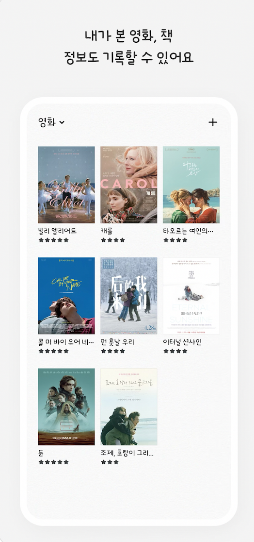 이 중에서 해마일기는 자신이 기록한 감정 기록을 월별 통계로도 볼 수 있고, 일기 뿐만 아니라 영화와 책을 기록하는 카테고리도 따로 있어요. 영화의 경우 제목을 검색하면 포스터와 영화의 정보가 바로 연동되기 때문에 기록이 수월한데다가, 책 카테고리 역시 제목만 검색하면 책의 표지와 함께 출판사 판본까지 자동으로 연동되어 다양하게 찾아볼 수 있어요. 일기를 쓰면서, 자기가 본 영화나 읽은 책도 함께 기록하고 싶은 분들에게 추천드려요.