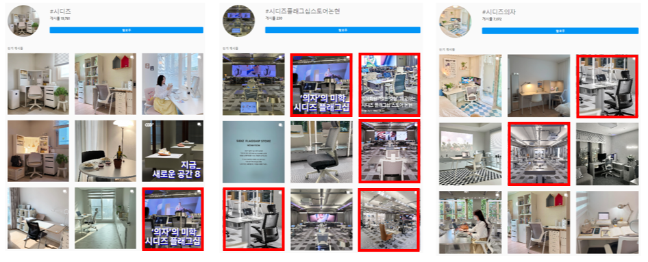 ‘시디즈 플래그십 스토어’ 키워드 검색 시 PC 기준 상위 노출되며 시디즈 플래그십 스토어 논현 DB를 누적시킬 수가 있었고, 인스타그램 콘텐츠는 노출 86,828회, 도달 63,263회, 북마크 135회로, 인스타그램 해시태그 인기 게시물로 노출 및 브랜딩 및 캠페인 인지도 확산을 이끌어낼 수 있었죠. 다양한 공간을 큐레이션 하는 계정으로 시디즈 플래그십 스토어논현을 소개하기에 적합한 인스타그램 계정으로 진행했던 것도 높은 노출 및 도달 달성한 것으로 분석하고 있어요. 인스타그램 바이럴 1차 종료 후 파워페이지 2차 추가 진행 및 스폰서드 광고를 추가 집행하며 말미에도 지속적인 플래그십 스토어 논현 노출 및 홍보를 진행한 것 또한 캠페인을 끝까지 성공적으로 마칠 수 있는 비결이었다고 생각해요.