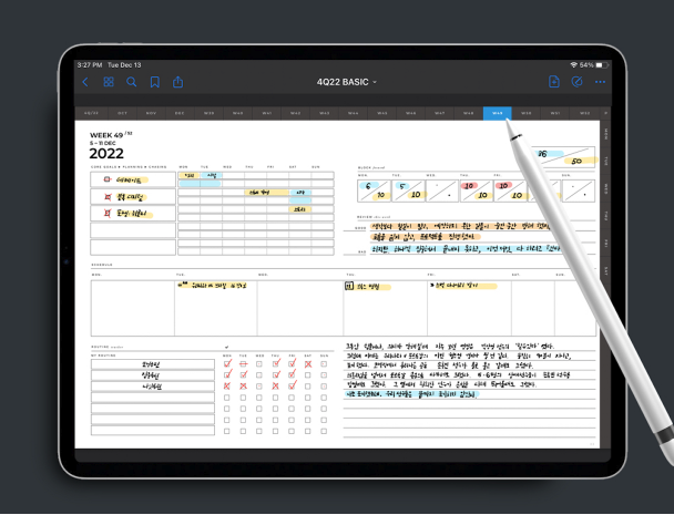 올해 가장 늘어난 다이어리 형태는 바로 온라인 다이어리인데요. 단지 일기를 쓰거나 할일을 메모하는 것을 넘어서 하루하루의 루틴과 과제를 시간 단위로 꼼꼼하게 기록하는 사람들이 많아졌어요. 갓생 트렌드의 영향으로 하루를 돌아보고 반성하면서 다음날을 준비하거나, 다음 주를 준비하는 경우도 많아졌죠. 또 일상을 기록하는 것뿐 아니라 읽은 책이나 영화를 기록하거나, 1년을 넘어서 좀 더 긴 기간의 인생을 계획하고 기록하려는 사람들도 늘었어요.