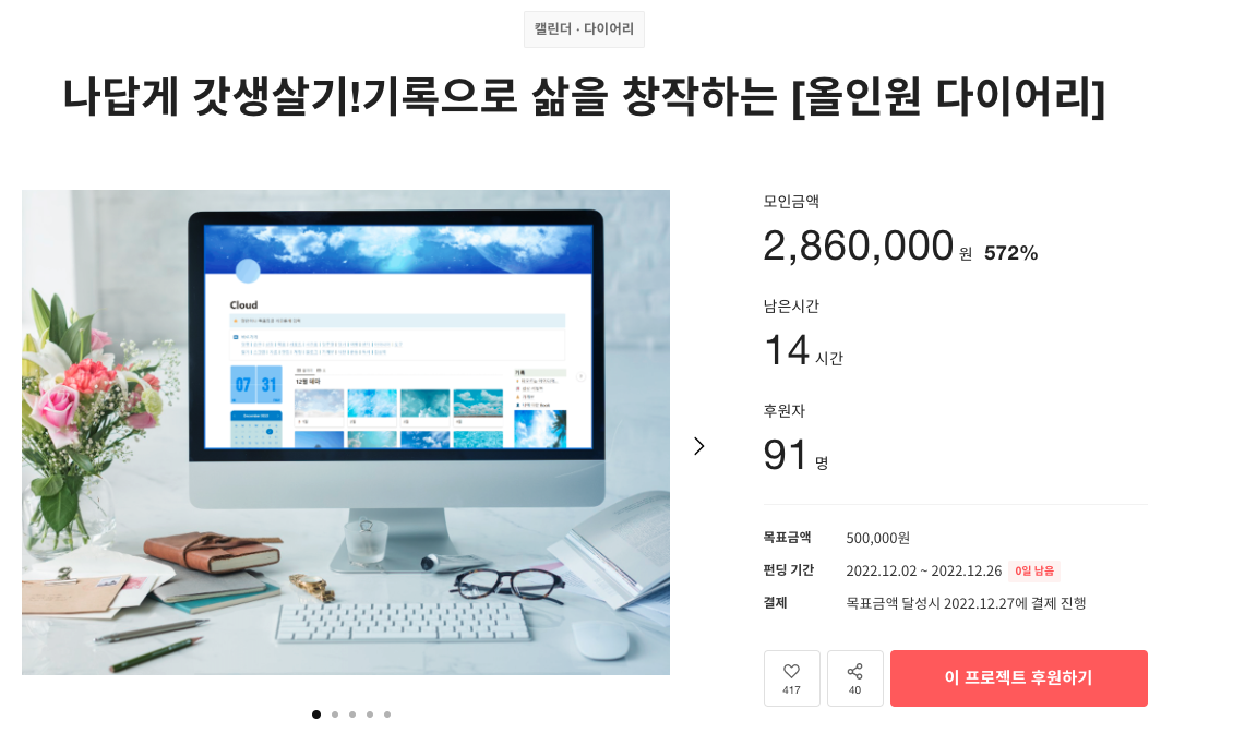 얼마 전 Z세대가 스티커를 사기 위해서 오프라인샵을 많이 이용한다는 사실을 전해드렸죠. 오늘은 MZ세대가 새해를 미리 준비하는 방법이자 중요한 연례행사 중 하나로 '달력과 다이어리 준비하기'를 소개해보려고 해요. 갓생이라고 불리는 자기 계발이 트렌드가 되면서, 사람들이 그 방법으로 활용하는 시간관리의 툴이 다양화되었고, 그 과정을 기록하려는 욕구도 많아졌어요. 그만큼 이제는 자신의 일상을 기록하는 형태도 취향마다 습관마다 다양화되었어요. 이러한 전체적인 트렌드 속에서 텀블벅을 통해서 최근에는 어떤 아이템들이 나왔는지 올해의 달력&다이어리의 유행을 알려드릴게요.