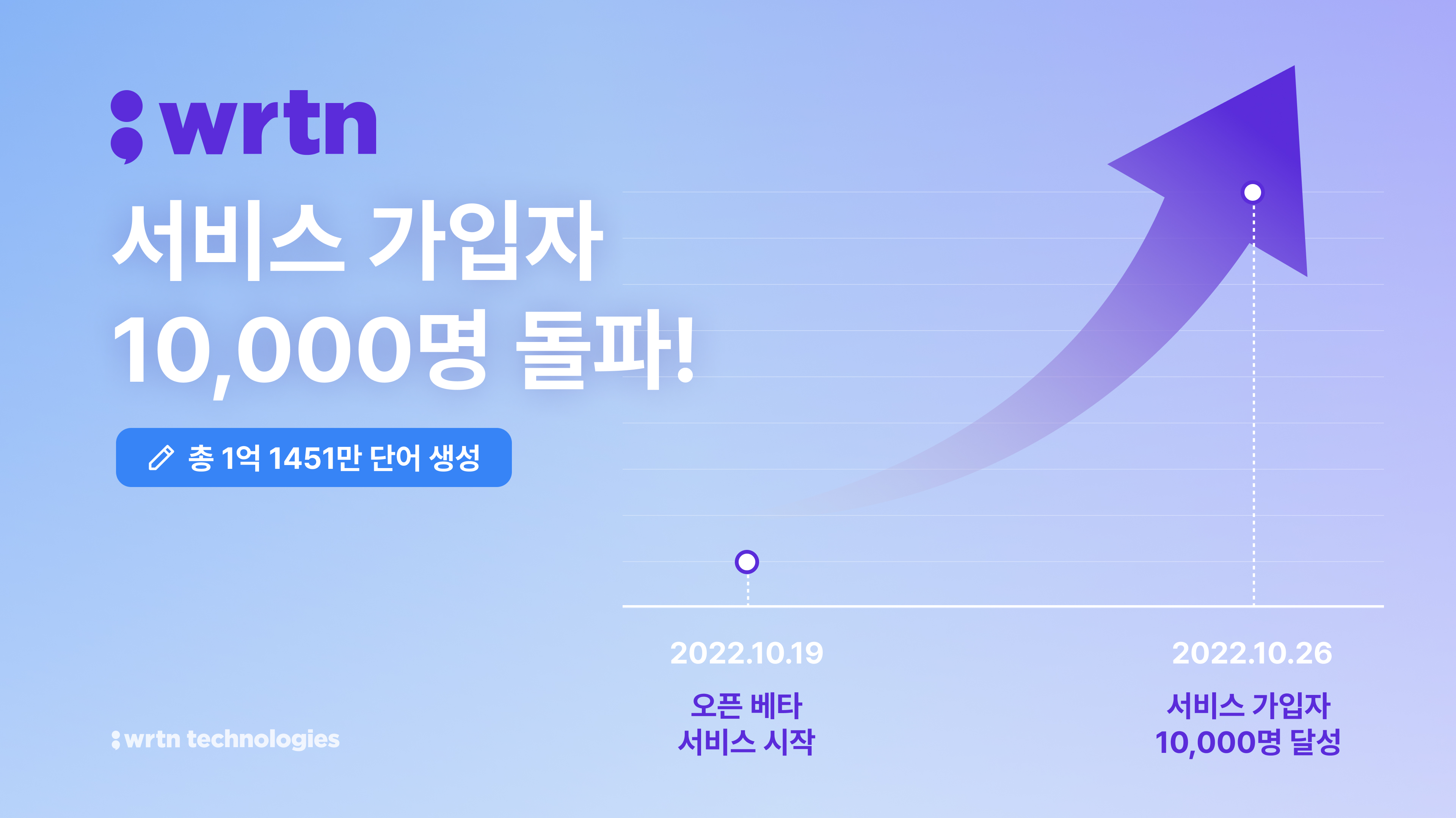 덕분에 처음 오픈 베타를 시작한 10월 첫 달에 가입자가 1만 명을, 그다음달에는 2만 6천 명을 돌파했습니다. 오픈 베타 서비스 사용자들은 '소구점 하나를 입력하면 AI가 타깃의 니즈를 파악해서 문장을 만들어주기 때문에 뤼튼으로 초안을 만든 후 글을 쓰니 업무 효율이 굉장히 높아졌다.'는 사용 후기를 밝히기도 했어요.