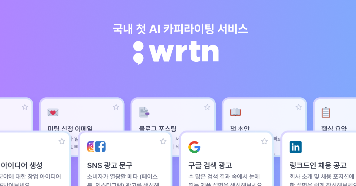 뤼튼을 제작한 뤼튼테크놀로지스는 SNS 광고 문구, 세일즈 이메일 등 마케팅 업무에 필요한 활동을 위해 50개 이상의 AI 툴을 제공해요. 심지어 블로그 콘텐츠 같은 장문의 글쓰기까지 지원하죠. 고객의 반응을 이끌어낼 수 있도록 콘텐츠에 맞는 적합한 말투나 느낌, 톤앤 매너를 세밀하게 조정하는 것도 가능하고요.