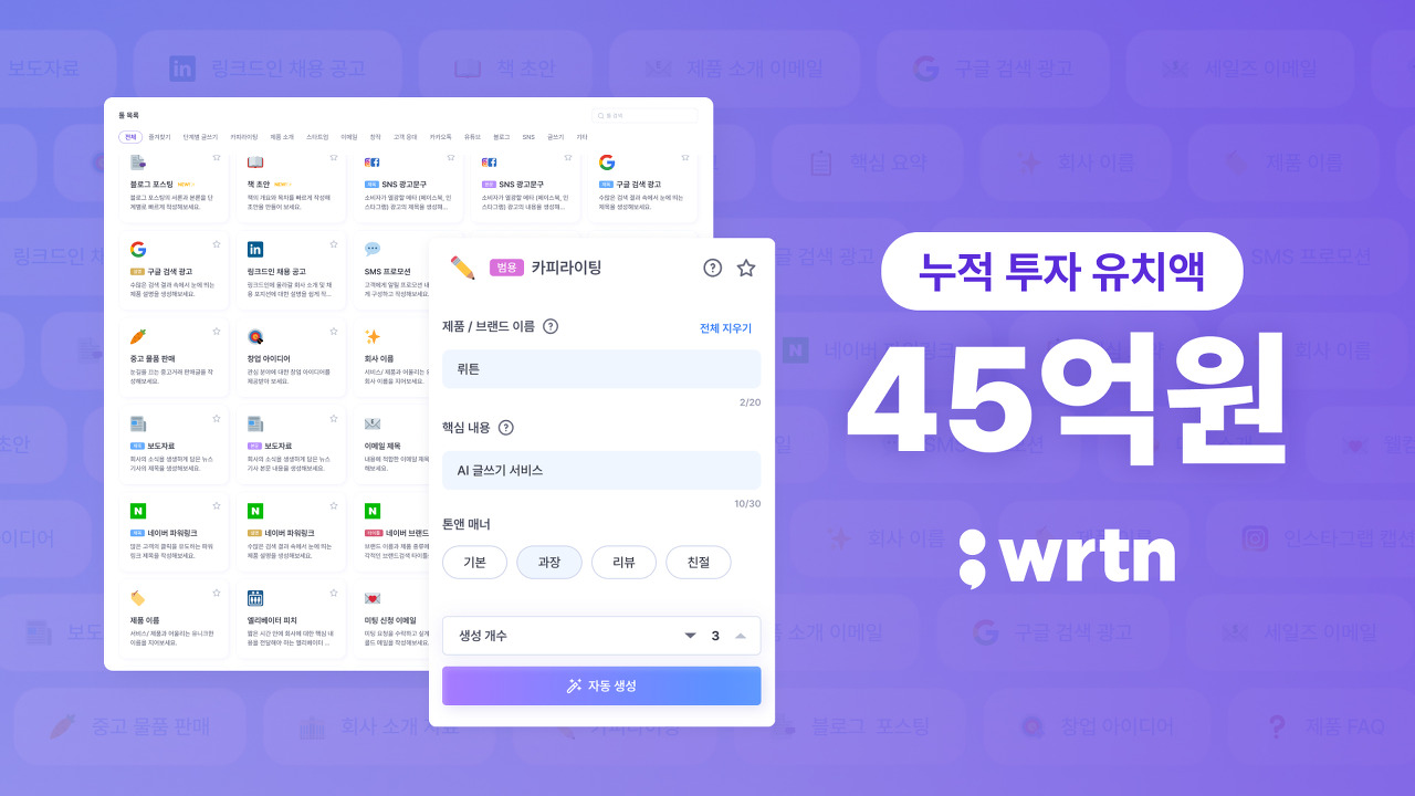 ✔️ AI 기술로 마케팅 카피 문구를 자동 생성하는 '뤼튼' 서비스가 시장 전반적으로 긍정적인 호응을 얻고 있습니다.