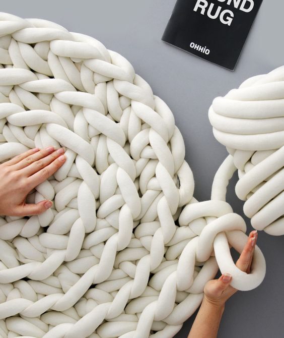 굵은 뜨개실을 의미하는 자이언트 얀은 기본 지름 2cm 이상의 통통한 면사나 폴리에스테르 소재, 벨벳까지 다양한 텍스타일로 출시되고 있어요. 포실포실한 촉감과 둥글둥글한 이미지는 겨울용으로 딱이죠. 게다가 선명한 원색부터 따뜻한 파스텔 컬러, 흑회색 등을 활용한 모노톤까지 다채로운 컬러 범위를 갖고 있어 소재부터 컬러까지 많은 사람들의 각기 다른 취향을 그대로 반영하고 있죠. 무엇보다 뜨개바늘이나 다른 도구 없이도 맨 손으로 실만 엮으면 되어서 뜨개질을 잘 모르는 일명 '곰손'까지도 참여 욕구를 높이고 있어요.