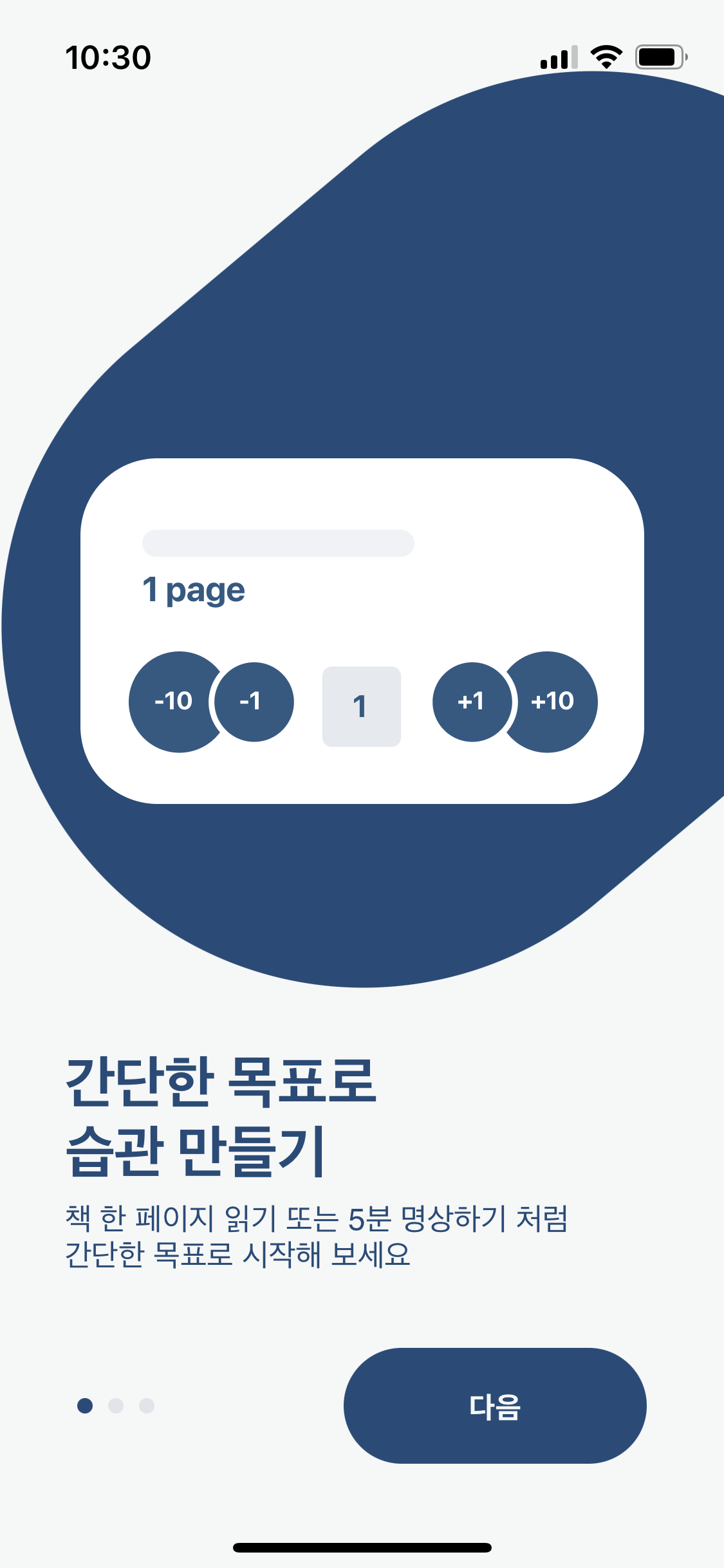 습관 형성을 도와주는 어플은 참 많은데요. 그중에서도 해빗트래커는 직관적이고 깔끔한 UI 디자인 덕분에 전체적으로 어플이 심플해요. 많은 전문가들이 좋은 습관을 형성하기 위해서는, 우선적으로 '불안감'을 낮추는 것이 중요하다고 말하는데요. 해빗트래커는 조금씩 습관을 쌓아가는 것을 추구하고 있어요. 또 만약에 '책 읽기'를 목표로 한다면, 구체적인 페이지 수로 목표를 설정할 수 있어요.