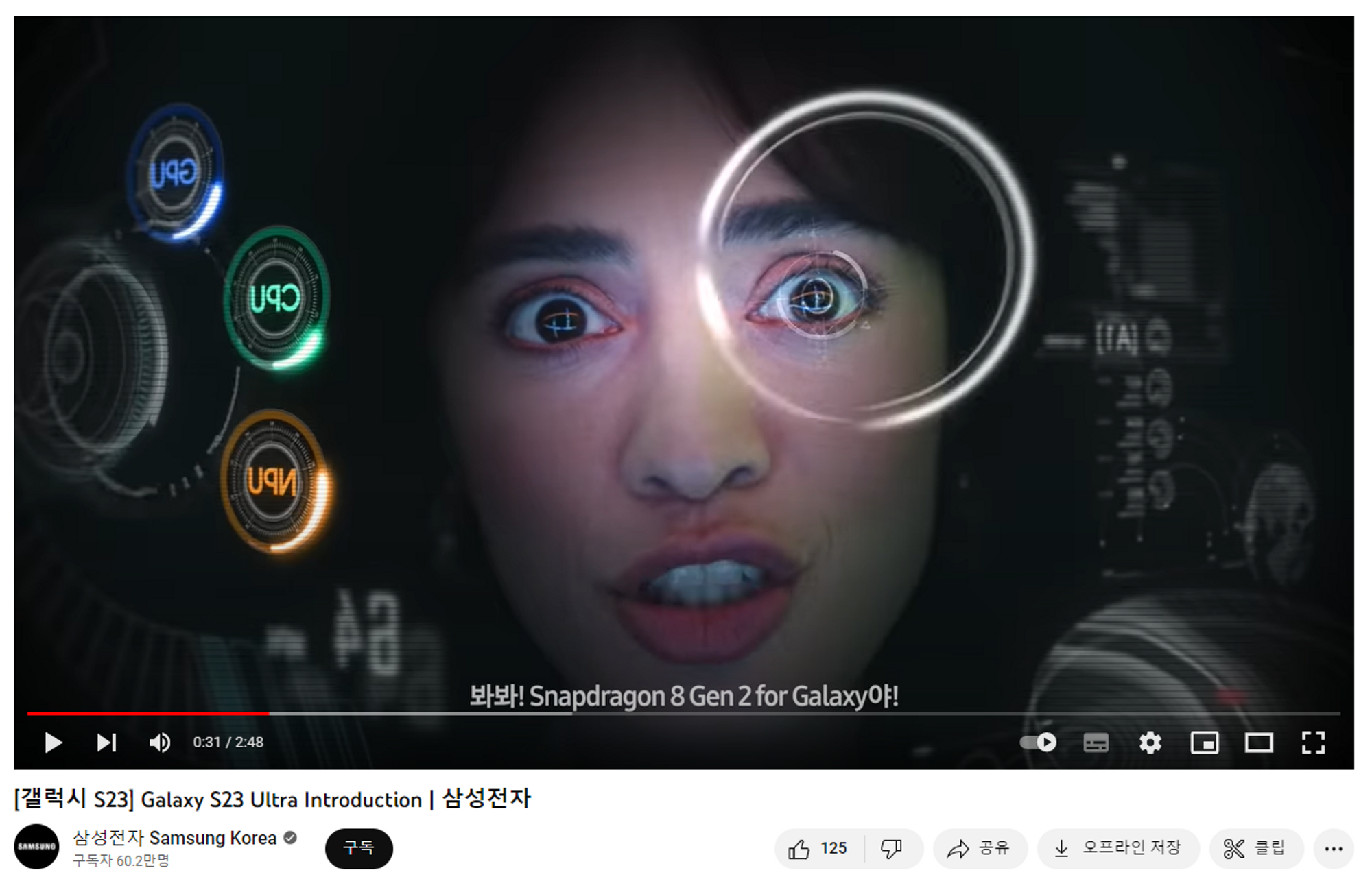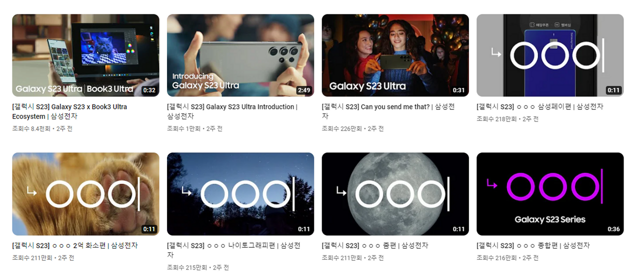 2번째 영상과 달리 3번째 영상은 단순하게 성능을 나열하는 것이 아닌, 실제 일상에서 갤럭시 s23을 활용해 찍을 수 있는 고해상도 사진들을 자연스레 보여줘요. 즉, 성능을 수치로 표현한 것이 아닌 일상에서 어떻게 활용할 수 있는지를 보여주며 와닿게 표현한 거죠.