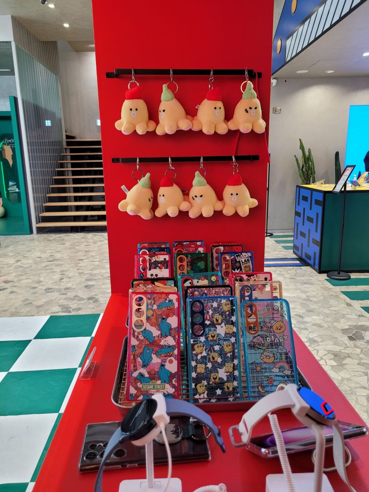 지하 1층에 내려가면 모바일 배틀그라운드를 체험해 볼 수 있어요. 주변은 다양한 배틀그라운드 소품들로 꾸며져 있고요. 삼성 갤럭시 S23을 활용해 배틀그라운드를 플레이해 볼 수 있어요. 이번 신제품의 핵심 기능인 GOS(게임 최적화 서비스)를 느껴볼 수 있답니다.