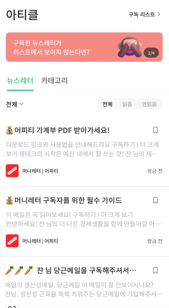뉴스레터를 구독해 본 적이 있다면, 생각보다 이를 관리하기 어렵다는 걸 깨닫곤 하는 데요. 메일로 구독을 하면, 업무용 메일과 뉴스레터가 섞이면서 어느 순간 뉴스레터는 뒷전이 되고 그렇게 시간이 지나면 어느새 뉴스레터는 스팸 메일함으로 분류되는 경우들이 많죠.