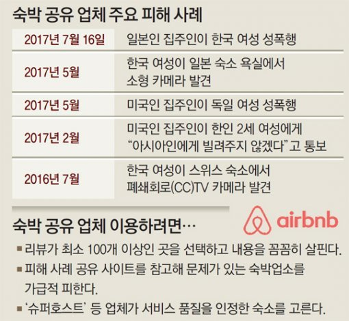 에어비앤비 투숙 중 일어나는 범죄 문제도 여전히 거론되고 있어요. 2015년 스페인에서 호스트가 게스트를 감금하고 성폭행한 사건도 있었고요. 더 공포스러운 건 호스트의 정보를 투숙객 외에 절대 알리지 않아야 한다는 정책 때문에 엄마에게 전화로 도움을 청했음에도 피해자는 사건을 피할 수 없었던 거예요.