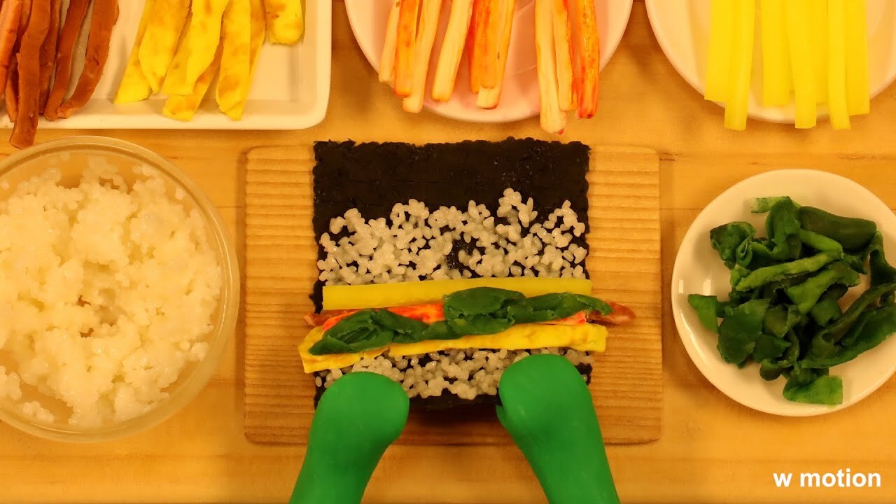 <W Motion>은 주인공 초록이가 음식을 만들어가는 과정을 굉장히 생생하고 현실적으로 그려내는 클레이아트 쿡방·먹방이에요. 김치를 썰 때 칼에 짓눌려 김치 양념이 도마에 짙게 흘러내리거나, 감자를 으깰 때 조금씩 덩어리가 부서져가는 등 섬세하고 디테일한 구석들을 작은 클레이아트로 잘 묘사했죠.