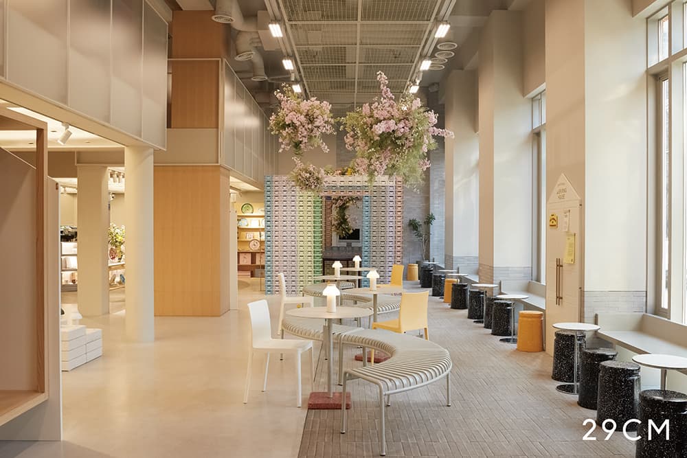 판매가 주목적이 아닌 공간이 왜 필요하냐고요? 오프라인 공간에 구현된 29CM가 고객에게 스며들게 만들기 위함이에요. 이 공간에서 편하게 친구들을 기다리기도 하고, 전시를 구경하며 시간을 보내기도 하죠. 사람들이 이구성수에 머무는 시간만큼 29CM가 그들에게 스며들고 있을 거예요.