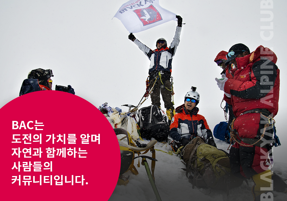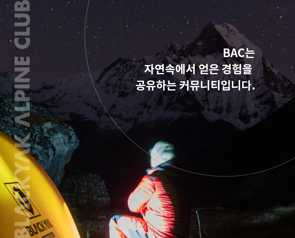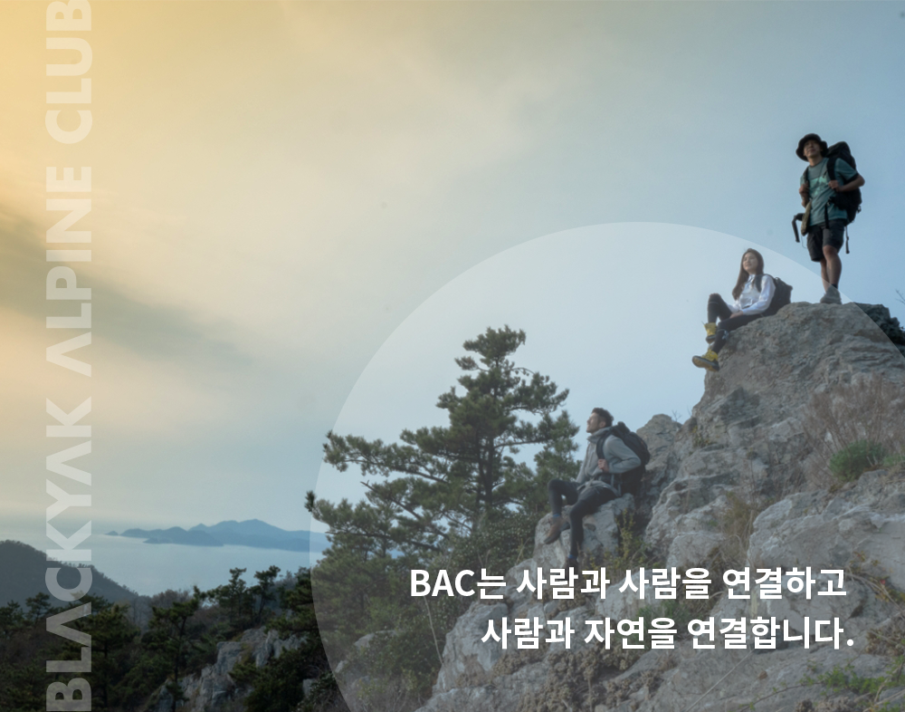 블랙야크는 2013년 BAC(블랙야크 알파인 클럽)의 시초인 ‘마운틴 북’을 론칭했어요. 산을 좋아하는 사람들이 함께 모여 정보를 나누고 아웃도어 활동을 즐길 수 있도록 도모하는 사이트였죠. 실제로 3000여 명의 회원이 순식간에 모였고, 지금의 BAC가 완성되었습니다.